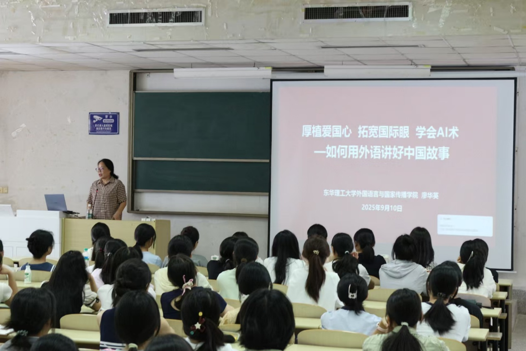 9月上旬,东华理工大学外国语言与国际传播学院以“厚植爱国心,拓宽国际眼,深研AI术——如何用外语讲好中国故事”为主题,先后于9月8日在南昌校区、9月10日在抚州校区为学院师生带来了一场内容丰富、意义深远的“开学第一课”。主讲人为外国语言与国际传播学院廖华英教授、万翠老师。