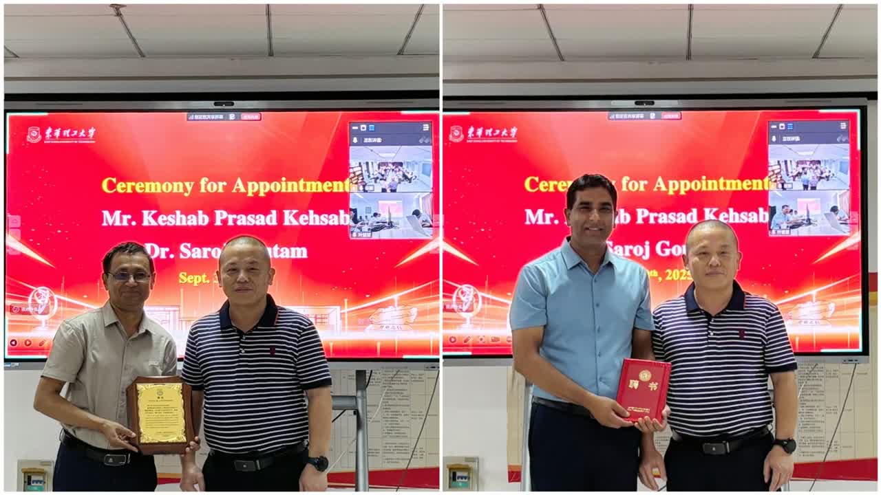 随后,张明代表学院为尼泊尔阿鲁尼玛学院校长Keshab Joshi、外交学院国际关系学博士Saroj Gautam分别颁发聘书。其中,Keshab Joshi受聘为兼职研究员;Saroj Gautam受聘为全职研究员。