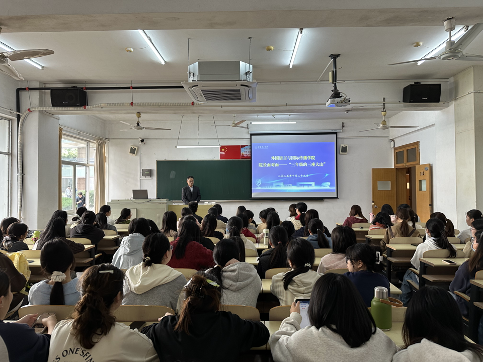 活动上,学院院长刘悦明就近期同学们提出的一些问题进行了现场解答。并以“三年级的三座大山”为主题,结合当前社会情况,客观分析了大学生普遍存在的问题及原因,语重心长地告诫同学们,志存高远,自我发展,既要向内求索,也要向外眺望,掌握跨文化交流的能力,努力成长为沟通中外的桥梁式人才。