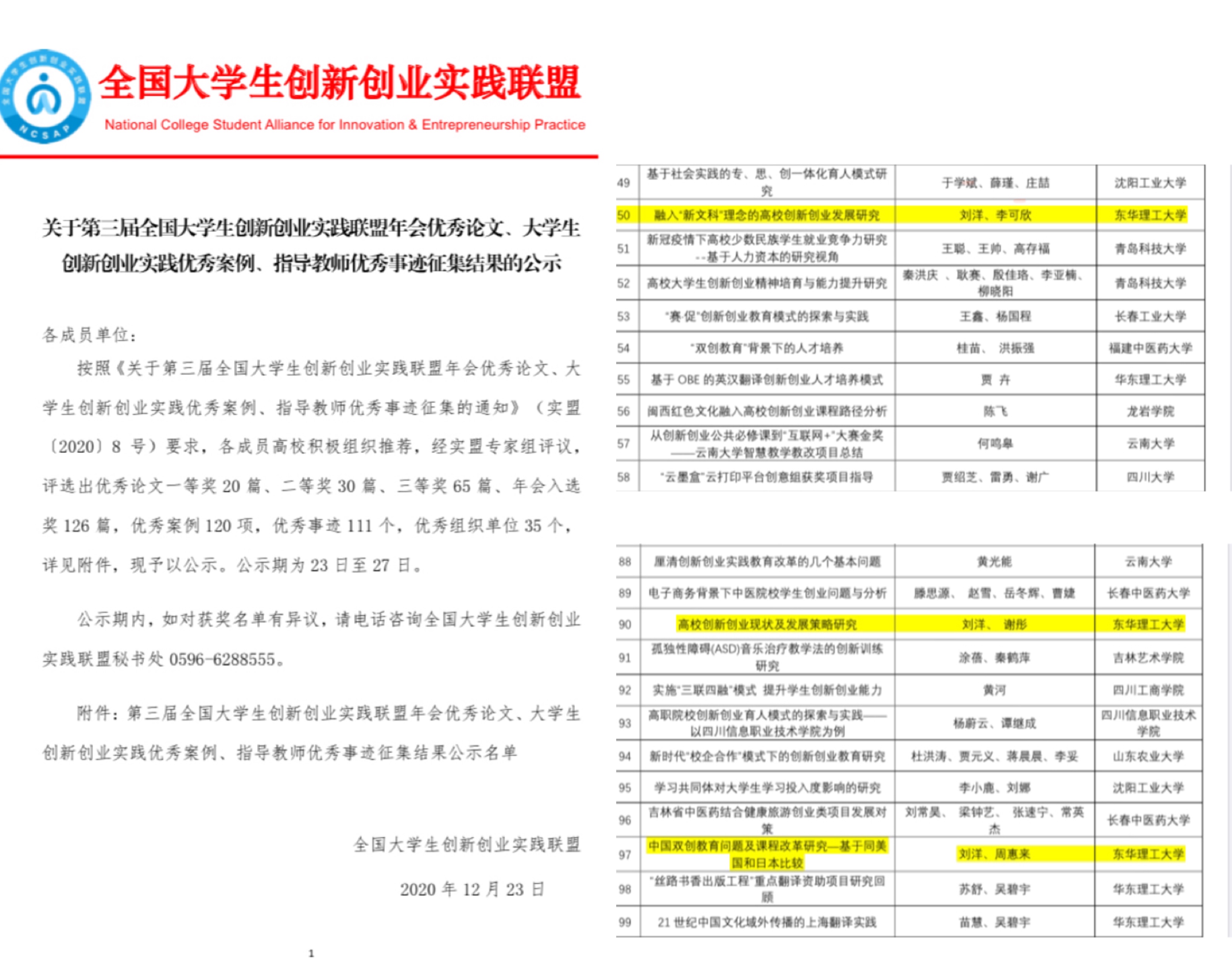 网投在线19级日语专业学生李可欣、20级日语专业学生周惠来、20级英语专业学生谢彤3位同学的论文入选教育部高等学校创业教育指导委员会-第三届全国大学生创新创业实践联盟优秀论文,指导老师刘洋。全国高校入选优秀论文126篇,【官网】是江西省唯一入选全国双创年会论文的高校,这是外语学院双创工作的良好开端。