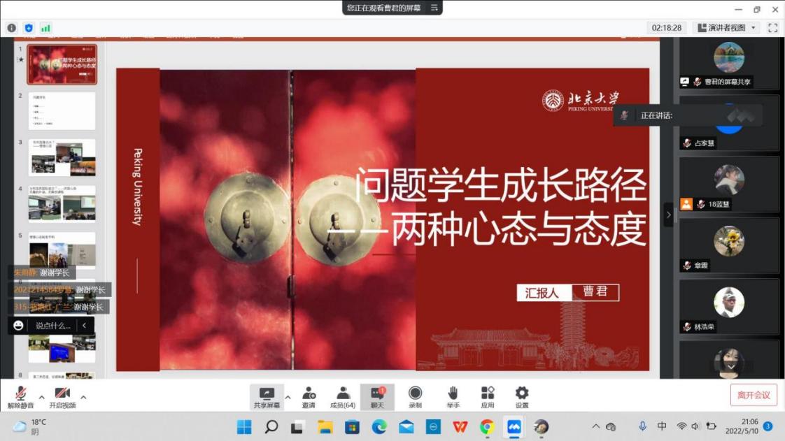(图1:2018级学生蓝慧在线主持交流会)