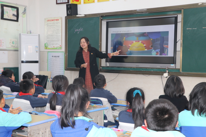 签约仪式后,英语系教工党支部书记黄玮莹博士走进新庐小学三年级一班的课堂,为小学生们带来了一场别开生面的英语故事带读课堂,受到在场师生的热烈好评。 (图/文 王翠华)