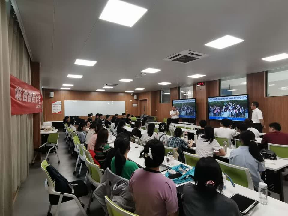 会谈结束后,仓林副校长与宫伟副所长一行来到第四教学楼与日语系学生进行了亲切交流。日语系学生的强烈求知欲与出色口语赢得了日方的赞誉。