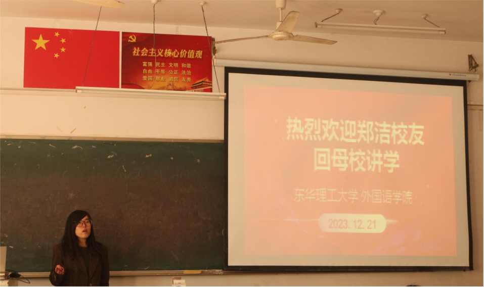 2023年12月21日下午2:00,网投在线2012届校友郑洁回到校本部2-211做关于《英语学习与电影翻译》的讲座,2021级和2023级英语(师范)专业的同学到场聆听讲座。