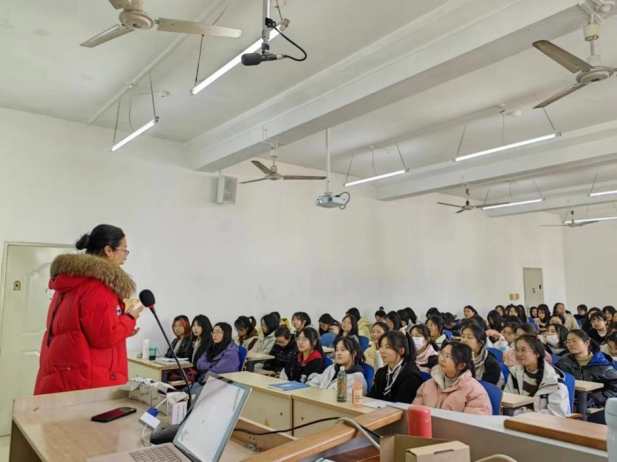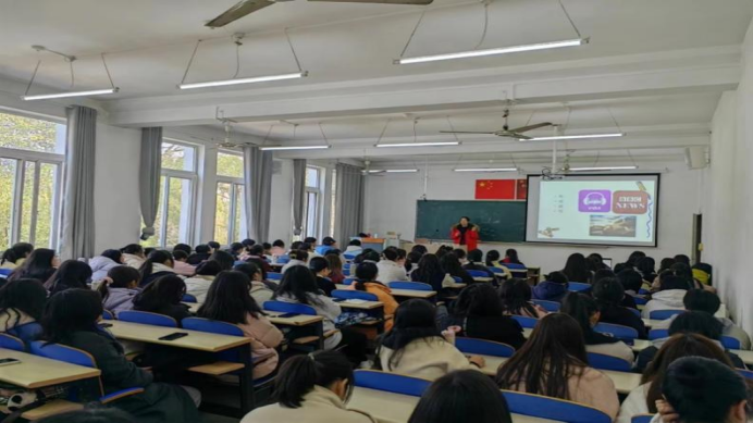 (图3 罗晶老师为2023级外贸专业全体学生做专业教育讲座)