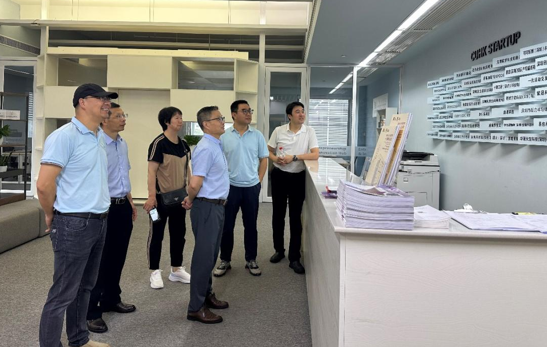 刘悦明一行首先走访了香港中文大学深圳研究院,了解了研究院的人才培养、科学研究、社会服务、管理制度等情况。随后,赴校友企业深圳市百亿耳电器有限公司进行了实地考察,公司负责人陈飞燕对创业历程、企业现状做了分享与介绍。