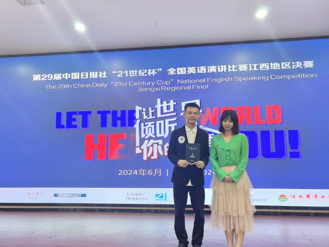 6月22日,第29届中国日报社“21世纪杯”全国英语演讲比赛江西地区决赛在江西农业大学落幕。来自南昌大学、江西师范大学、江西财经大学等高校的20名优秀选手同台竞技,经过激烈角逐,最终东华理工大学理学院宋秉乾同学荣获二等奖,将代表江西地区参加全国半/总决赛。