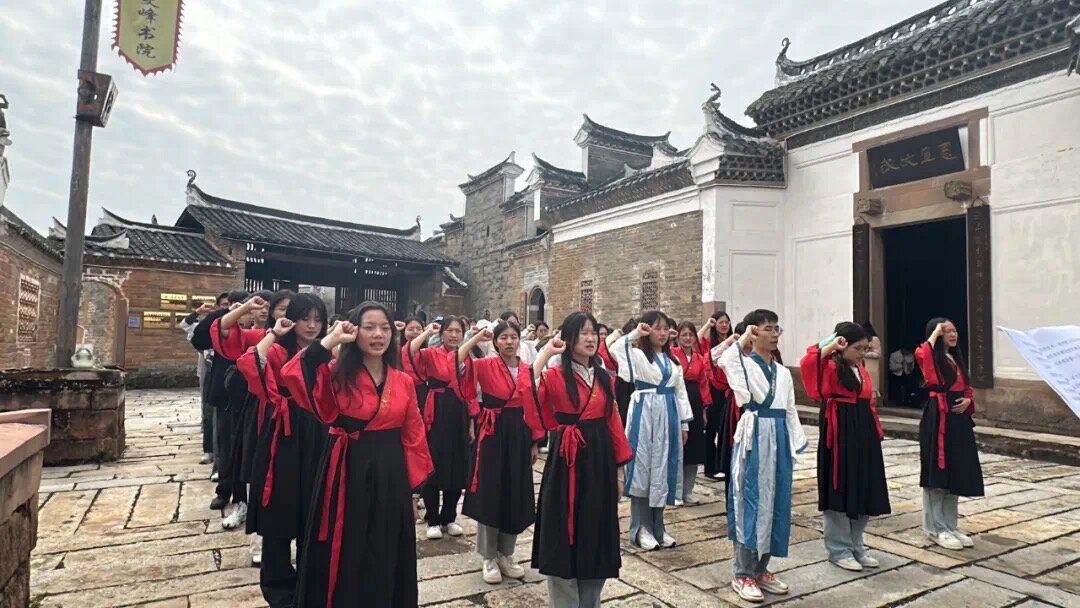 11月3日,外国语学院2021级英语(师范)专业的56名学子前往江西省广昌县雯峰书院,参与了一场富有意义的国学教育活动。