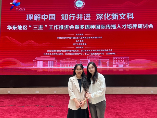 华东地区“三进”工作推进会暨多语种国际传播人才培养研讨会于4月11日在浙江网投在线举办,旨在呼吁各高校凝心聚力,一齐落实“三进”工作,加快培养能讲好中国故事的高素质外语人才。学院教务办负责人汤昱、教师代表王佳歆参加会议。