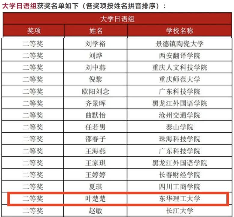 5月8日,由北京外国语大学中国外语与教育研究中心、北京外国语大学中国外语教材研究中心、北京外国语大学中国外语测评中心和外语教学与研究出版社共同举办的2025年外研社“教学之星”大赛(多语种组)全国复赛落下帷幕。东华理工大学日语系教师章霞获日语专业组全国复赛一等奖、叶楚楚获大学日语组全国复赛二等奖。根据大赛赛制,章霞将代表学校参加日语专业组全国总决赛。